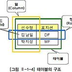 1. 데이터베이스- 특정 기업이나 조직 또는 개인이 필요에 의해 데이터를 일정한 형태로 저장해 놓은 것- DBMS(Database Management System) : 데이터베이스 관리 소프트웨어n 데이터베이스의 발전- 1960년대 : 플로우차트 중심의 개발 방법- 1970년대 : 계층형(Hierarchical) 데이터베이스, 망형(Network) 데이터베이스 같은 제품- 1980년대 : 관계형 데이터베이스가 상용화되었으며 Oracle, Sybase, DB2와 같은 제품- 1990년대 : 객체 관계형 데이터베이스로 Oracle, Sybase, Informix, DB2, Teradata, SQL Server n 관계형 데이터베이스 (Relational Database)- 1970년 영국의 수학자였던 E.F..