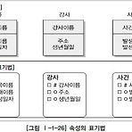 1. 속성(Attribute)의 개념l 업무에서 필요로 한다.l 의미상 더 이상 분리되지 않는다.l 엔티티를 설명하고 인스턴스의 구성요소가 된다. 2. 엔티티, 인스턴스와 속성, 속성값에 대한 내용과 표기법가. 엔티티, 인스턴스, 속성, 속성 값의 관계n 한 개의 엔티티는 두 개 이상의 인스턴스의 집합이어야 한다.n 한 개의 엔티티는 두 개 이상의 속성을 갖는다.n 한 개의 속성은 한 개의 속성값을 가진다. 나. 속성의 표기법 3. 속성의 특징l 엔티티와 마찬가지로 반드시 해당 업무에서 필요하고 관리하고자 하는 정보다.l 정규화 이론에 근간하여 정해진 주식별자에 함수적 종속성을 가져야 한다.l 하나의 속성에는 한 개의 값만 가진다. 하나의 속성에 여러 개의 값이 있는 다중값일 경우 별도의 엔티티를 이용하..